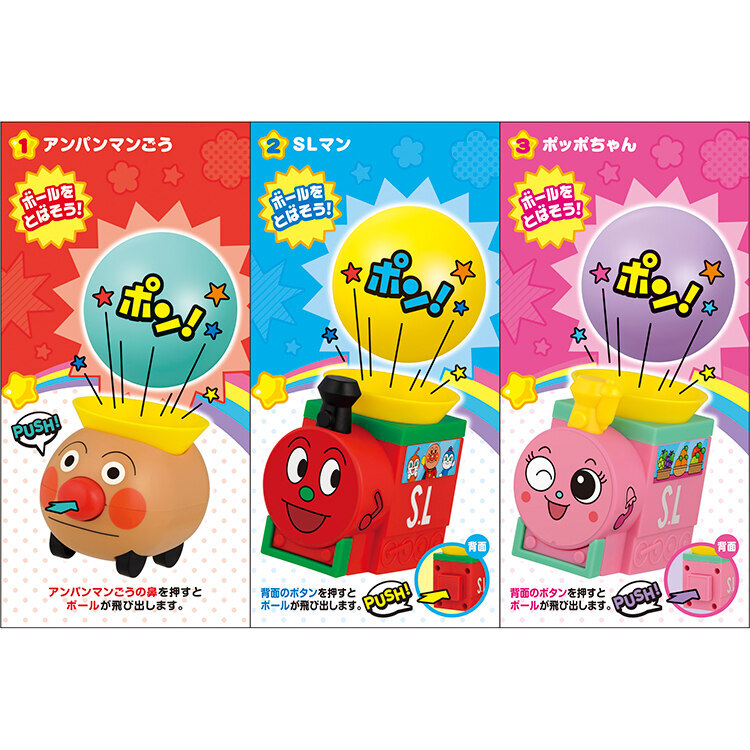 ラインナップは「アンパンマンごう」「SLマン」「ポッポちゃん」の全3種。複数集めれば飛ばす距離や高さを競ったり、遊びの幅がもっと広がります!