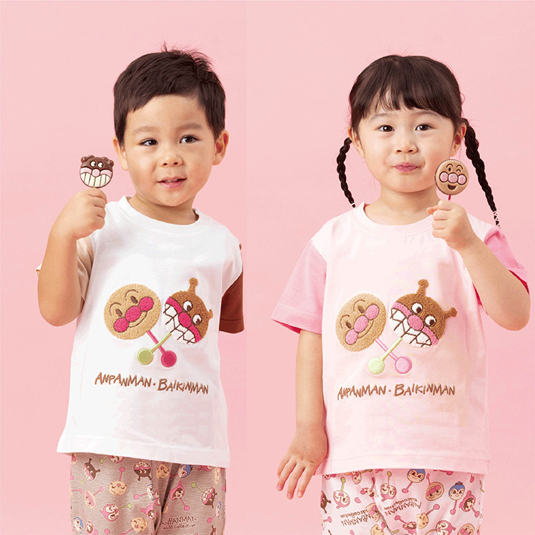 アンパンマンペロペロチョコをイメージした大きなさがら刺繍が印象的な半袖Tシャツ!