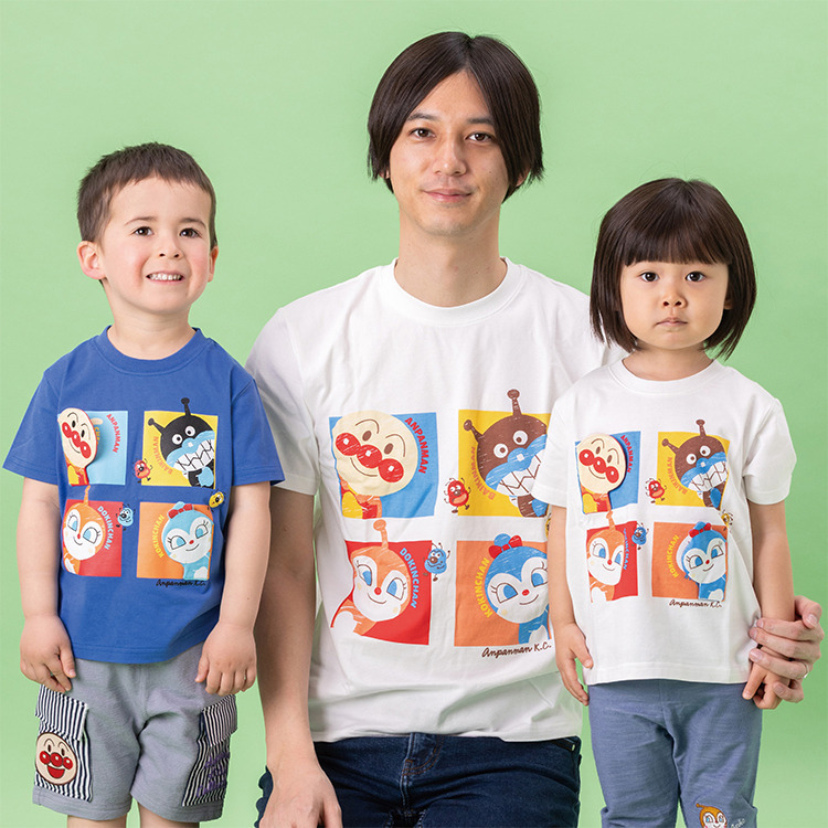 アンパンマンたちがひょこっと覗いているデザインの半袖Tシャツ!