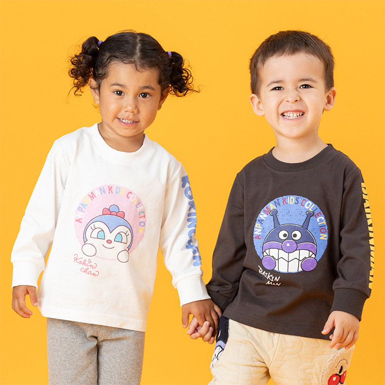 オフ白配色はコキンちゃん、ブラック配色はばいきんまんがデザインされています。フロントとリンクしたバックプリントもかわいい一枚♪
