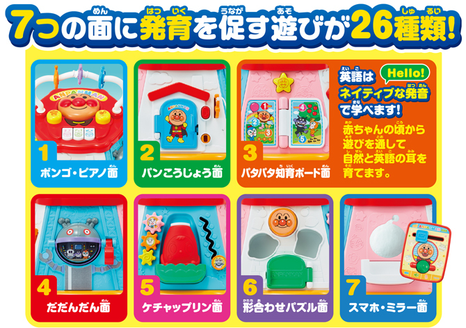 7つの面に発育を促す遊びが26種類!8ヶ月~3歳ごろまで長く遊べます。