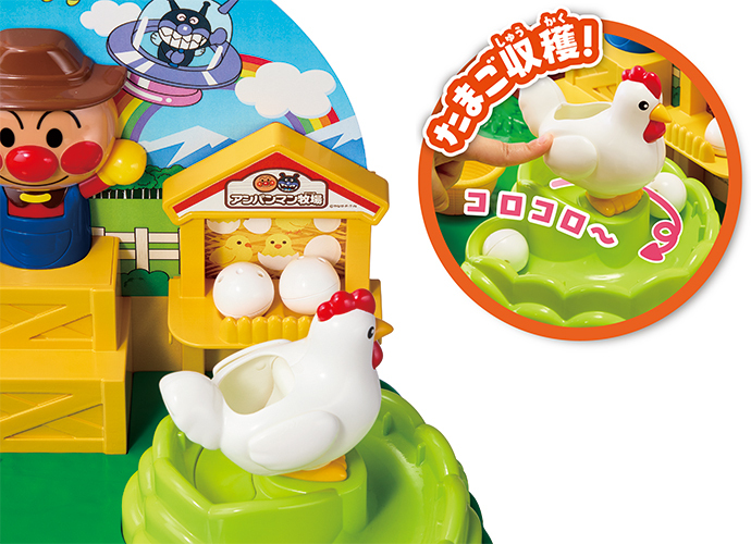 にわとりさんの鳴き声やアンパンマンとなかまたちのおしゃべりも流れるので、遊びをにぎやかに盛り上げてくれるよ☆