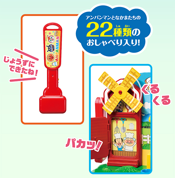 ブラシがおしゃべりしたり、ドアがパカッ!と開いたり、風車がくるくるまわったり。