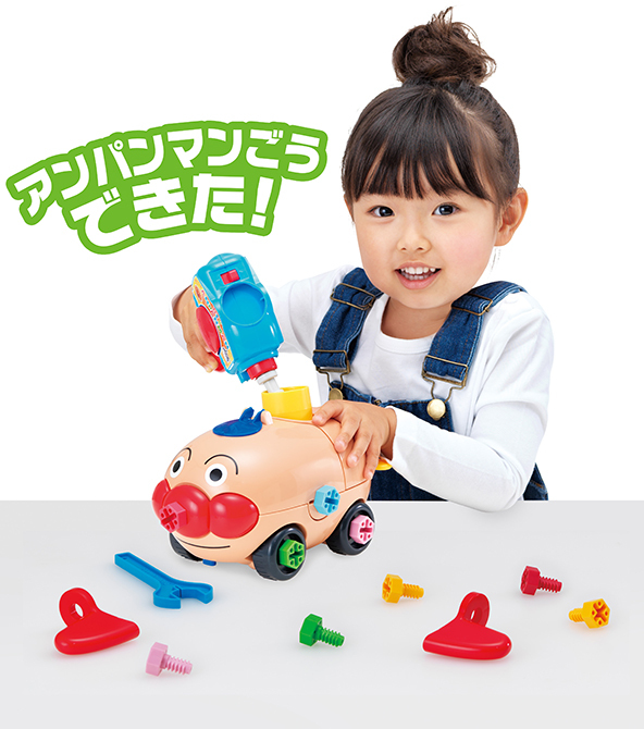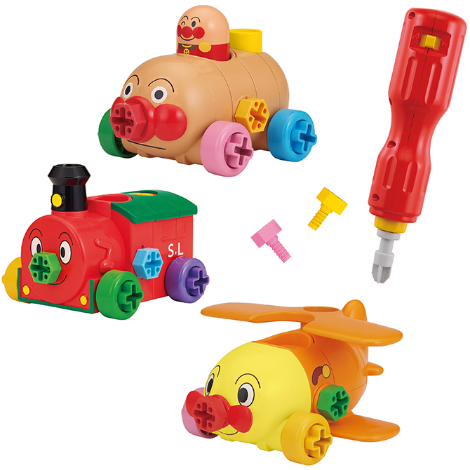 安全安心なお子様サイズのねじとハイパー電動ドライバーを使って、バラバラなパーツを組み立ててアンパンマンごうをつくろう♪