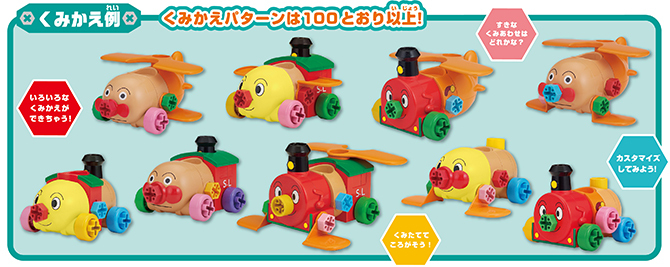 好きなパーツを選んでいろんなくみかえを楽しもう♪くみかえのパターンは100通り以上あるので、飽きずに長く遊べます!
