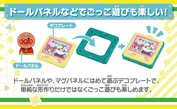 自由にはめられるデコプレートとドールパネルでストーリー遊びもできるので、ごっこ遊びがさらに広がります♪