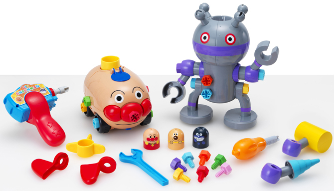 安心安全なお子様サイズのねじやレンチ、電動ドライバーを使って、バラバラなパーツを組み立てて「アンパンマンごう」と「だだんだん」を作っちゃおう♪